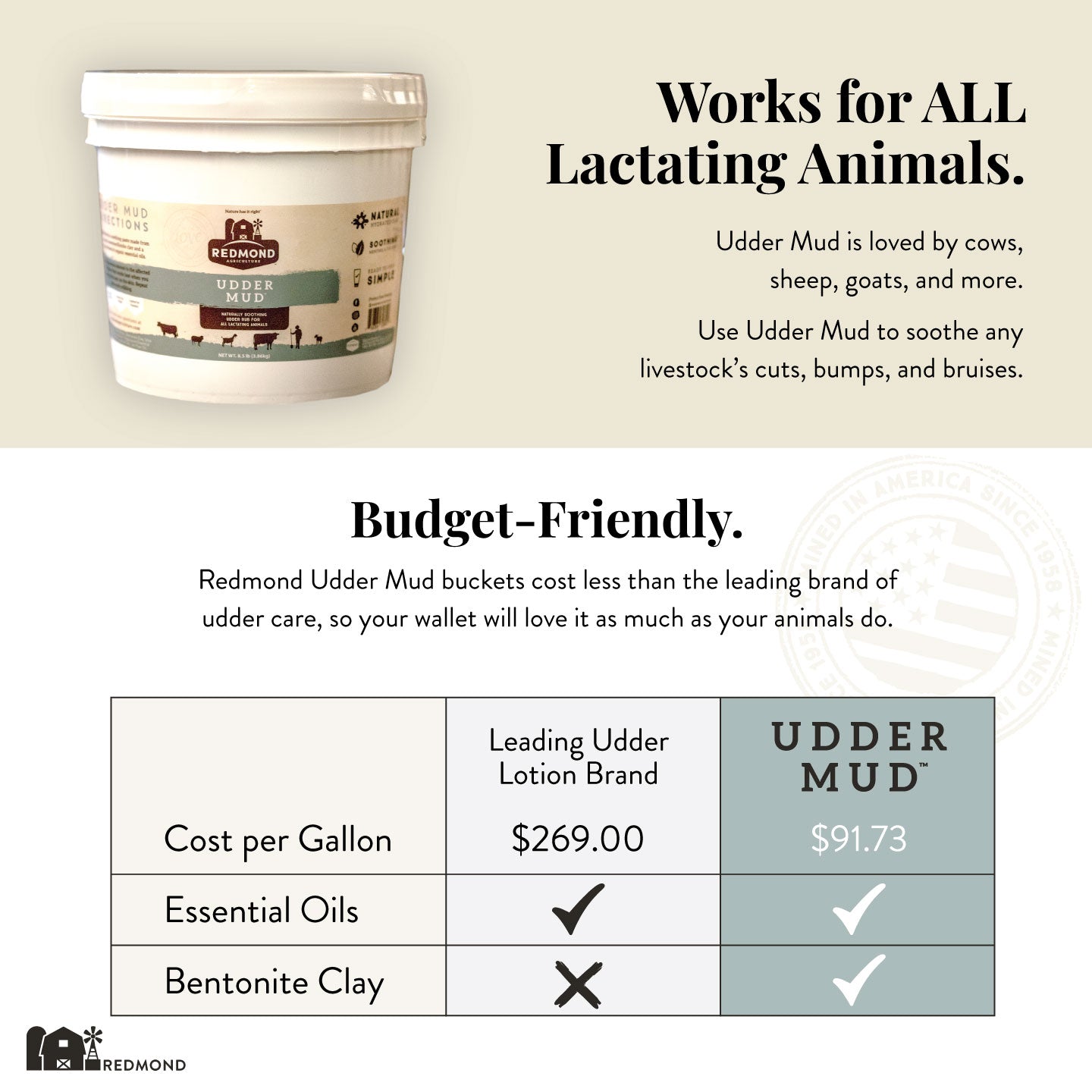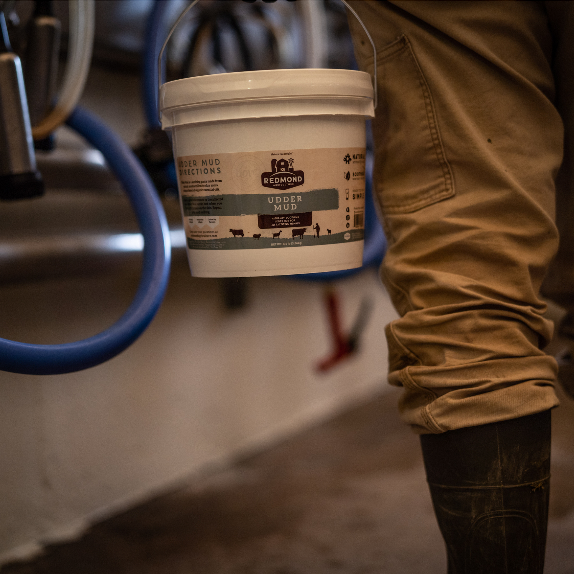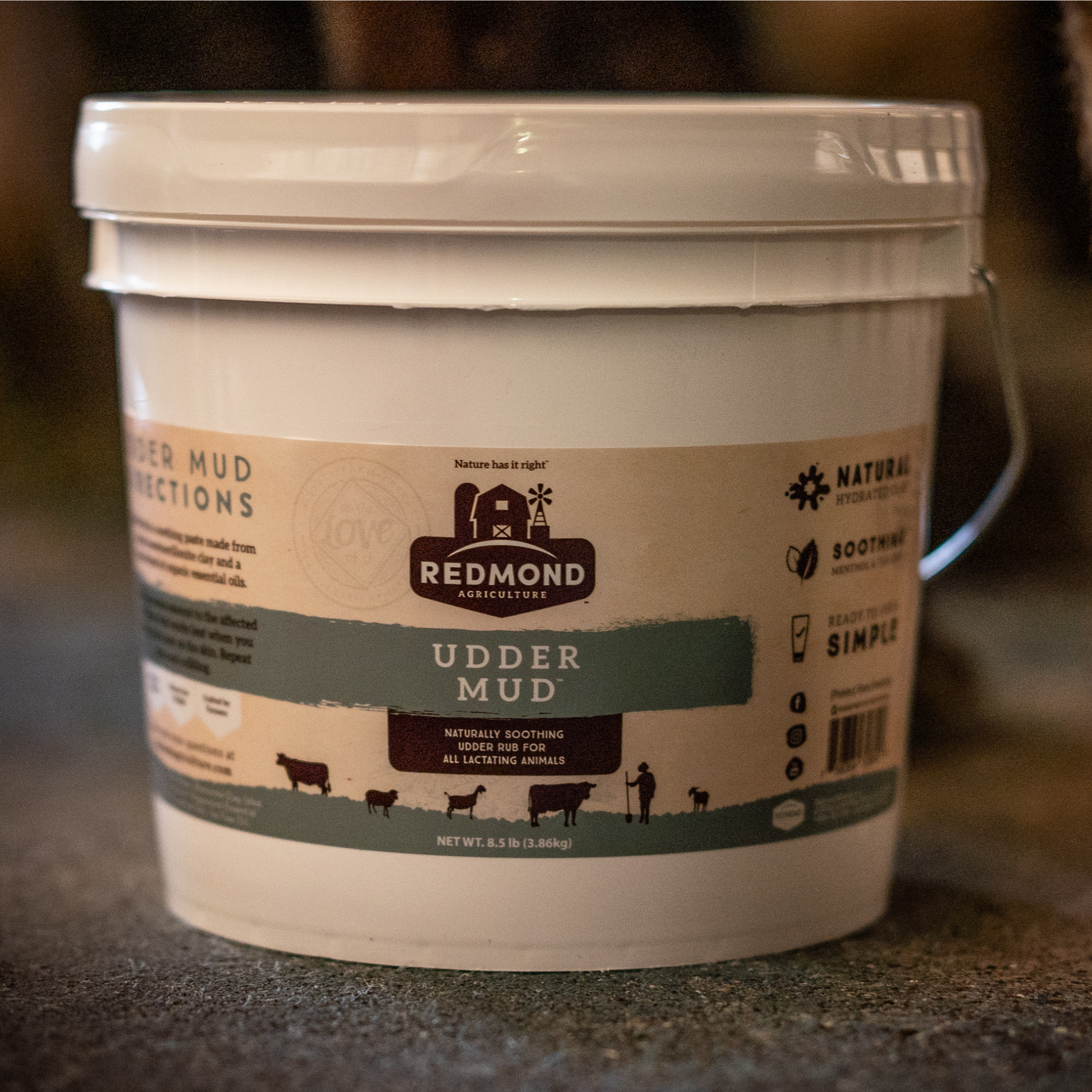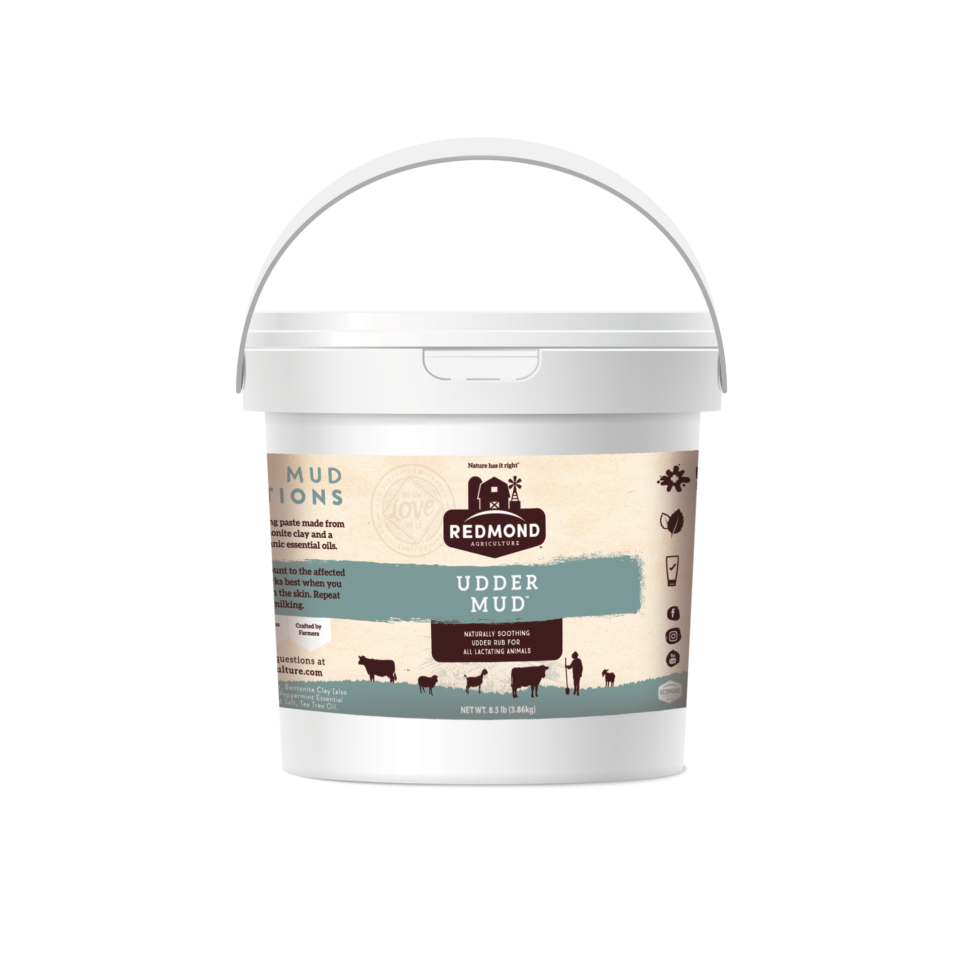 Redmond Udder Mud is a 100% natural clay rub with mint and tea tree oil that can draw heat and swelling out of the udder while increasing circulation to promote healing. Whether your approach is organic or conventional, Udder Mud can help you get back to what you love about raising animals instead of worrying about their health.